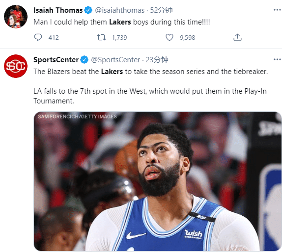 看到湖人残阵输给开拓者,目前正在失业的小托马斯又趁机找工作,发推写道:这段时间,我可以帮助湖人。