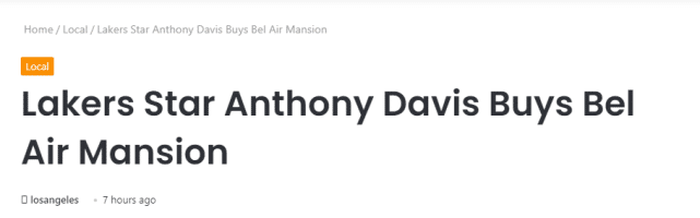 来源:直播车05-08 11:39直播车讯 北京时间5月8日,据Therealdeal网站报道,湖人球星安东尼-戴维斯已经在洛杉矶的顶级富人区(贝莱尔)购置了一套配备篮球场和游泳池的豪宅,消息源透露,交易价格是3200万美元。