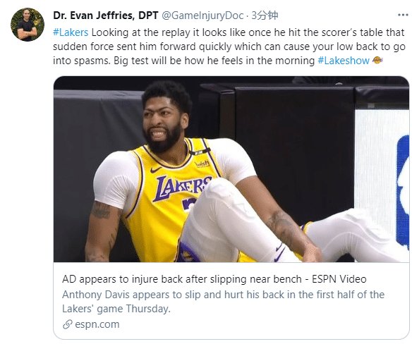 来源:直播车05-07 15:08直播车讯 北京时间5月7日,湖人24分惨败快船,赛季三战全败遭快船横扫,浓眉仅仅只打9分钟9投2中拿到4分,因背部痉挛而提前退出比赛;赛后浓眉透露自己的脚踝感觉很好,背部伤势也没有那么痛了,计划出战下一场与开拓者的比赛。