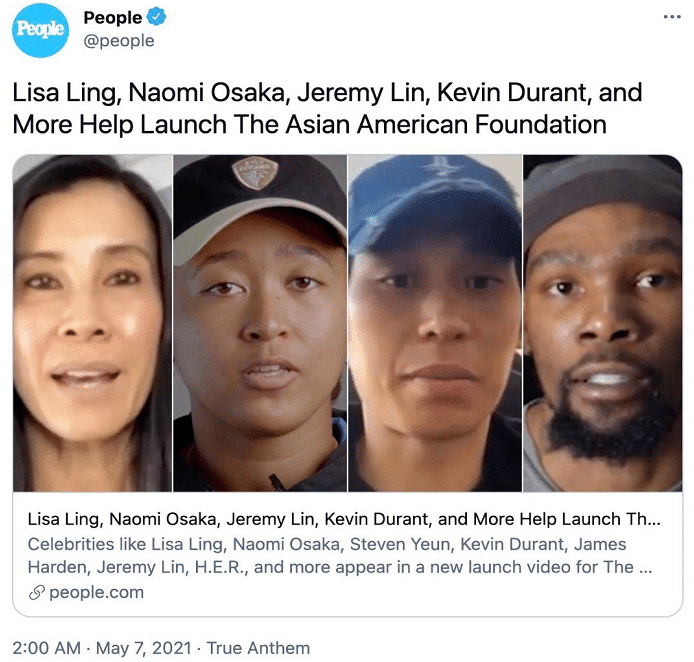 来源:直播车05-07 11:50直播车讯 前段时间外媒报道篮网老板蔡崇信联合沃尔玛、美国银行和NBA联盟等一起成立亚裔基金会,其中蔡崇信和雅虎联合创始人杨致远等人承诺投入1.25亿美元,沃尔玛和NBA联盟等筹集1.25亿,加起来是2.5亿美元,用于支持亚裔社区发展、改变外界对于亚裔的看法,这样的举动收获了外界一片的赞誉。而现在传来消息,凌志慧、大阪直美,林书豪以及凯文杜兰特协助成立了亚裔基金会。