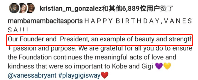而在瓦妮莎39岁生日这天,曼巴品牌服饰官方也向创始人和总裁瓦妮莎表达了祝福,“我们的创始人和总裁,是美丽和力量的典范,我们很感激你做的一些,以确保基金会有继续有意义的行为和爱,这对科比和Gigi如此重要”。