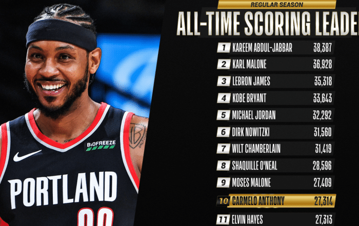 果然,这一历史性时刻没有让球迷等太久,在上半场还没有结束的时候,安东尼就已经得分上双,个人生涯总得分就此超越海耶斯强势杀入历史前十!众美媒包括NBA官方也是第一时间发推向甜瓜表示祝贺和致敬!