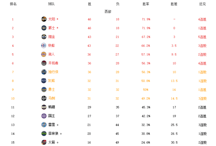 现在的勇士位居西部第九名,他们的战绩是32胜32负,距离身前的灰熊只有0.5个胜差,领先马刺0.5个胜差,在还剩下8场比赛的情况下很有希望冲击季后赛附加赛的席位。