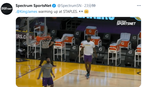 詹皇赛前热身曝光!脚步灵活确定复出?湖人官方晒霸气入场照:国王步