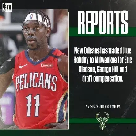 去年休赛期,再次在季后赛失利的雄鹿开始玩命,送出乔治希尔、布莱德索和3个首轮签以及未来两个选秀权互换资格,只为从鹈鹕换来30岁的霍勒迪。