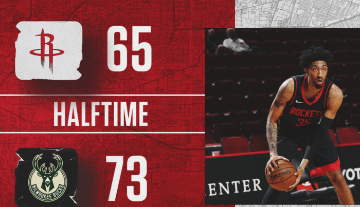 字母哥开场打了不到一分钟就因为扭伤脚踝退赛,但即便如此,雄鹿的阵容深度可以说仍然大于火箭。在上半场的较量中,雄鹿取得8分领先。火箭20岁新星凯文波特前两节分别拿到9分,半场已经18分7助攻进账,得分组织一把抓!