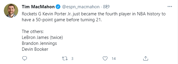 第二、小波特年仅20岁,成为NBA历史第四年轻轰下50+的球员,另外三位分别是詹姆斯(两次)、詹宁斯和布克。
