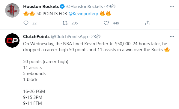 疯狂!火箭新星50+11狂刷四大神迹:比肩詹皇哈登+一神迹历史第一