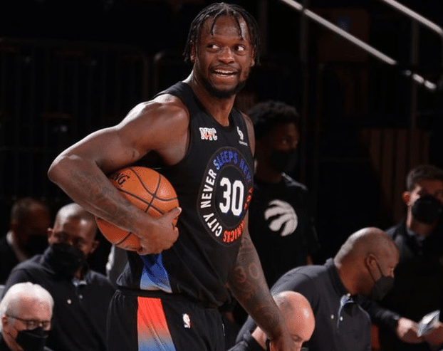球队核心兰德尔太全面了!他身材高大,体型强壮,在攻防两端都极具统治力。兰德尔控球娴熟,自己不仅可以持球发起进攻,也可以高位策应为队友创造得分机会。半场落地战,兰德尔也可以通过低位单打改变对方防守策略。因为身体极具爆发力,兰德尔不仅可以在对抗中将球打进,也可以在防守中连续送给对方麻辣火锅。本赛季,兰德尔场均可以得到23.9分10.4篮板6助攻的全面数据。从之前的科比助手到现在的纽约之王,兰德尔之后还会给我们带来更多的惊喜!