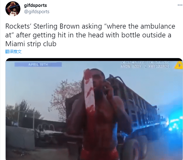 火箭球员被殴打后画面曝光,赤裸半身满脸鲜血太狼狈,小波特与警察争论