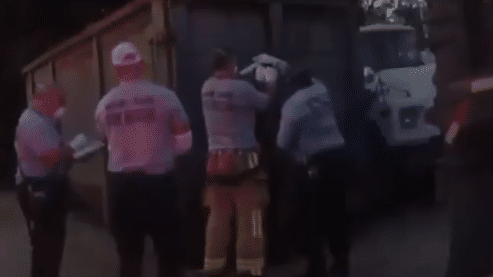 天空蒙蒙亮,警察已经来到现场,斯特林-布朗不仅裤子快掉下来了,而且赤裸上半身,站在一辆大卡车后面,打电话叫救护车,白色毛巾早已被鲜血染红,如此画面太狼狈;等到救护车到来之后,斯特林-布朗接受临时治疗,医生用纱布给他包扎伤口,然后被送到医院。