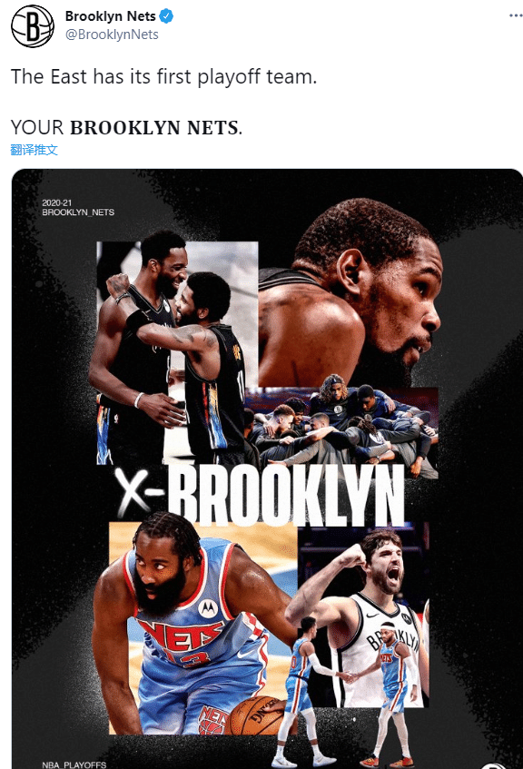 虽然篮网和猛龙的比赛还没分出胜负(篮网最终赢球),凯尔特人不敌雷霆,黄蜂输给雄鹿,因此篮网躺赢锁定季后赛;篮网官方晒合影,恭喜篮网成为东部首支杀进季后赛的球队。