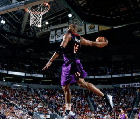1998年乔丹拿到第二个三连冠,功成名就的他便选择了退役。而也是在这一年,金州勇士用他们手中的首轮第5顺位选中了卡特,随后便把他送至猛龙。而谁曾想到,这个身穿15号的翩翩少年,却让加拿大航空中心体育馆的上空变得沸腾起来。菜鸟赛季,卡特只有一场替补登场,并且场均可以得到18.4分5.7篮板3.2助攻1.5盖帽1.1抢断的全面数据。没有意外,卡特也毫无悬念地获得了那一年的“年度最佳新秀”!第二年,卡特场均可以得到25.7分5.8篮板3.9助攻数据,并且获得了当年的全明星票王。在之后的4年,卡特有3次获得全明星票王,成为了当时炙手可热的超级巨星。那卡特为什么会受到球迷如此强烈的追捧呢?