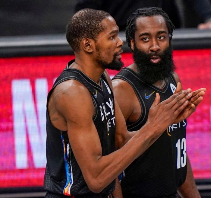 此前杜兰特在比赛中撞伤大腿,因伤连续缺席三场比赛;哈登因腿筋伤势复发同样继续缺席,杜登两大巨头又同时缺阵,篮网对阵凯尔特人的重担又落在欧文肩上。