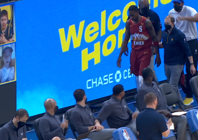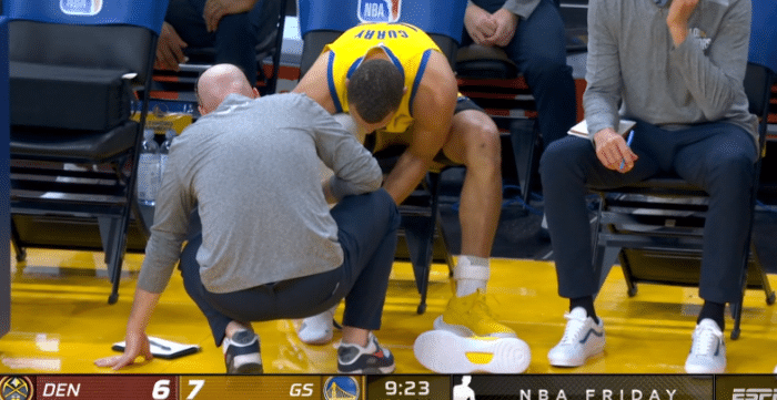 突发!掘金主力仅打59秒受伤离场,库里也受伤返回更衣室,名嘴直言诡异