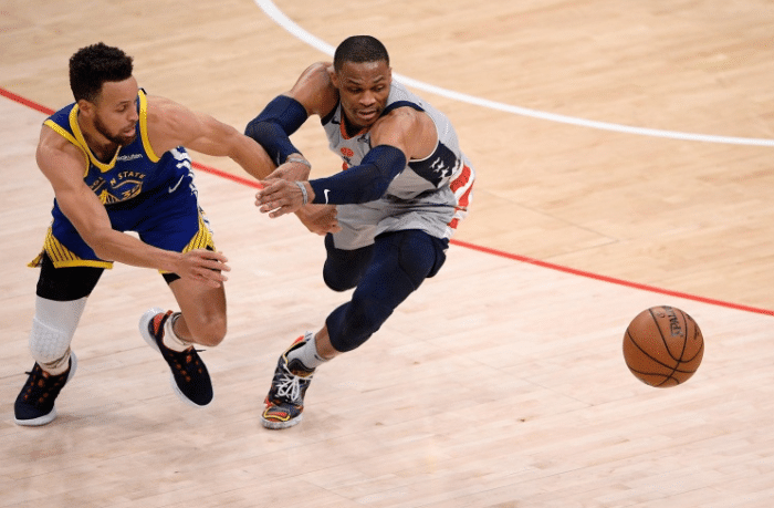 来源:直播车04-23 19:45直播车讯 最近一场比赛,奇才118-114击败勇士,和两队上一次相遇一样,勇士打到第四节中段还占据领先优势,然而最后5分钟崩盘!诚然,这里面有维金斯上篮不中的因素,而库里的表现却难得一见的低迷,全场25中7,其中三分球14中2,只拿到18分7篮板8助攻,此外还有6次失误!进入4月份以来,库里场均40分,但唯独遇到奇才不好使,赛后,奇才主教练布鲁克斯和核心比尔都谈到了一个关键问题:威少在防守端的表现,居功至伟!
