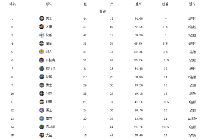13支球队出战!西部格局一览:前四全部赢球,雷霆耻辱12连败