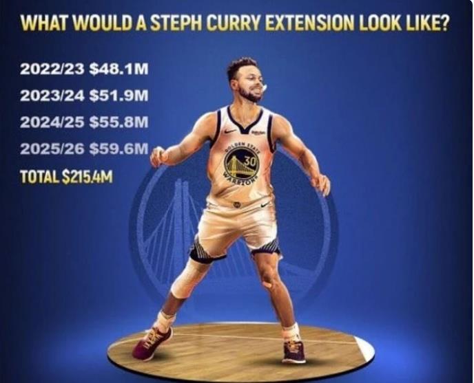 库里优秀的表现也让勇士队将此前被拒绝的续约事情提上了日程,库里的下一份合同能有多少钱呢?根据薪资专家BOBBY MARKS分析,勇士队将给库里提供一份4年2.15亿美元的合同,如果拿到这份合同,库里将成为NBA历史上第一个拿到两份2亿顶薪合同的球员,不过库里配的上这份荣誉。