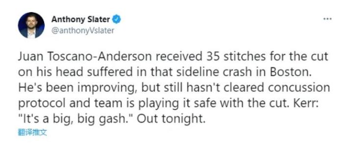 在对阵凯尔特人的比赛中,为了胜利,安德森玩了命救球,哪怕他知道摔进技术台很有可能受伤,但是他还是那样做了,事发后,安德森头上包裹着头巾返回了更衣室接受治疗,近日,勇士队主教练科尔谈到了安德森的伤情,他表示这位勇士悍将头上的伤口很大,足足缝了35针,因为这次伤病,安德森将错过多场勇士队的比赛,不过勇士队都会这个28岁球员拼搏精神感动,而这次救球也很有可能成为安德森命运的转折点,当前的安德森拿的是双向合同,或许勇士队会因为这份精神,给他一份正式合同,就如同猛龙队给渡边的一样。