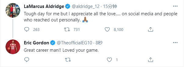 来源:直播车04-16 15:08直播车讯北京时间4月16日,篮网球星阿尔德里奇宣布退役后首次发声,表达内心的感谢之情;35岁阿尔德里奇发推写道:对我来说,这是艰难的一天,但我还是要感谢所有在社交媒体以及现实生活中联系我、给我支持人们的爱。