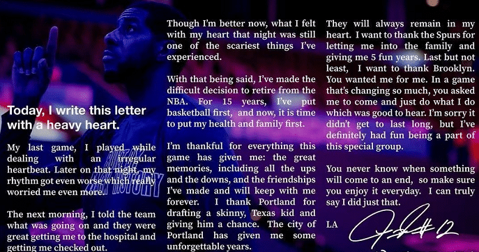 来源:直播车04-16 11:59直播车讯 阿尔德里奇突然宣布退役的消息震惊NBA和球迷们,才离开马刺,来到篮网不久的前NBA全明星球员阿德在社交媒体上发布告别信,宣布自己正式退役。阿德称在11日输给湖人的比赛中,他心律不齐:“尽管我现在已经好多了,但那天晚上发生的事情是我经历过的最恐怖的事情之一,是时候把健康和家庭放在第一位了”。出于健康层面的考虑,阿德宣布退役。