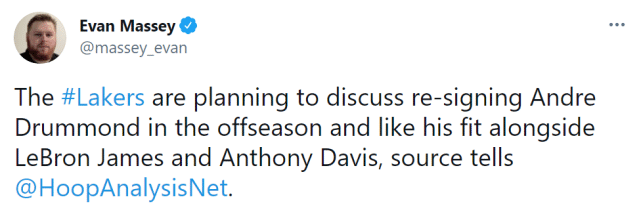 来源:直播车04-15 16:26直播车4月15日讯,据NBA记者Evan Massey报道,消息源透露,湖人计划在休赛期和安德烈-德拉蒙德讨论续约的事宜,他们认为德拉蒙德很适合和詹姆斯、浓眉一起打球。很快有球迷表示,庄神还没和詹眉一起打过球,湖人怎么就知道适合呢?Massey回应道,那是因为湖人了解詹眉的技术特点,并知道庄神将在那两位巨星身边如何打球。