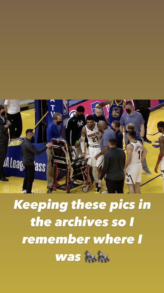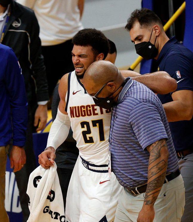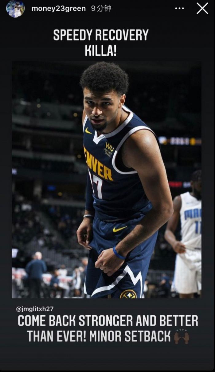 穆雷第一时间报平安,晒出自己受伤的图片给自己打气“你可以把斗士拖出战斗……但你永远不能夺走斗士的斗志。”掘金官方发推“我们知道你归来时会变得更强。”据统计本赛季掘金共打了54场比赛,其中穆雷共缺席了6场比赛,这6场比赛掘金仅取得3胜3负,胜率50%,场均得分112.8分;而在其出战的48场比赛中,掘金共取得31胜17负,胜率64.6%,场均得分115.2分。