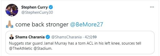 追梦格林为其送上祝福“早日康复,杀手!以更强更棒的姿态归来!希望无碍!”库里转发相关推文并附文“为穆雷祈祷,期盼你以更强大的姿态回归。”球场上是对手,但是场下所有运动员都不希望对手受伤,可以说勇士在这方面做得很正确!