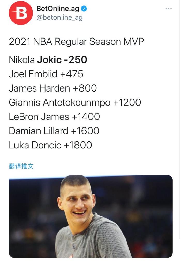 来源:直播车04-13 21:03直播车讯随着NBA本赛季常规赛的赛程逐步深入,常规赛MVP这一重大奖项的争夺也进入到了白热化阶段,NBA官方还有诸多媒体给出的MVP榜单显示出本赛季的MVP有着很大的不确定因素,因为没有球员现在就可以锁定MVP的位置。而还有不少美国媒体另辟蹊径,他们虽然没有明面上给出MVP的排行榜,但是却给出了有希望拿到本赛季MVP的球员赔率,下面就让我们来看一看这份赔率榜单。