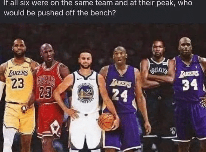 来源:直播车04-13 16:10直播车讯在NBA历史上,有很多伟大的球星,而对于一支球队来说,首发只能有5人。就拿梦八来说,强如韦德,保罗,德隆等伟大球星,也只能担任替补,不是他们不好,而是首发球员都太厉害了。就在近日,美媒发问,詹姆斯和乔丹,科比,库里,奥尼尔,杜兰特这6人如果在同一支球队,谁打替补?很显然,美媒这是在挑事情,找一些话题来吸引关注,不过,这套6人阵容,如果真要选出首发5人,还真的不是一件容易的事情。