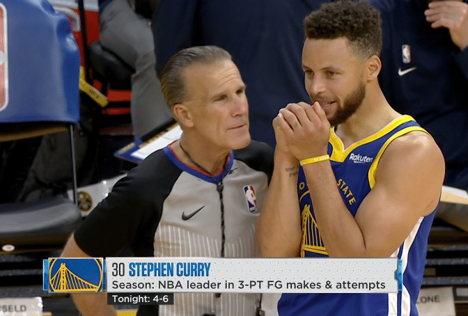 比赛正式开打后,库里首节照常打满12分钟,开场手感火热,连续命中两记三分球,见状约基奇亲自防守库里;连续打铁之后,库里再次命中三分球,火力全开,随后不讲理三分再中,库里咧嘴大笑;掘金疯狂包夹库里,但机会出来,库里超远追分三分,随后再次得分。