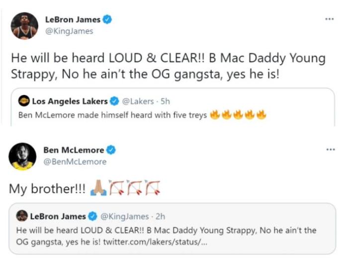 麦科勒莫的出色表现也迎来了球队老大詹姆斯的点赞,詹姆斯在社交媒体上表示:麦科勒莫用5个三分让人们看到了他,大哥表扬,麦科勒莫也及时回应:我的兄弟,如今湖人队双核复出在即,球队一团和气,这样的湖人值得我们期待。