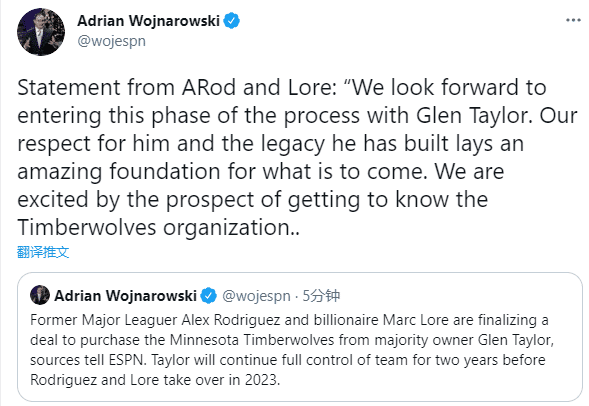来源:直播车04-11 15:59直播车讯明尼苏达森林狼就要被卖掉了,据ESPN名记沃纳罗斯基报道,三届MLB的MVP得主罗德里格斯和电子商务巨头马克-洛尔已经与森林狼老板格伦-泰勒签下一份意向书,二人斥资15亿美元将接替泰勒成为森林狼的新老板。