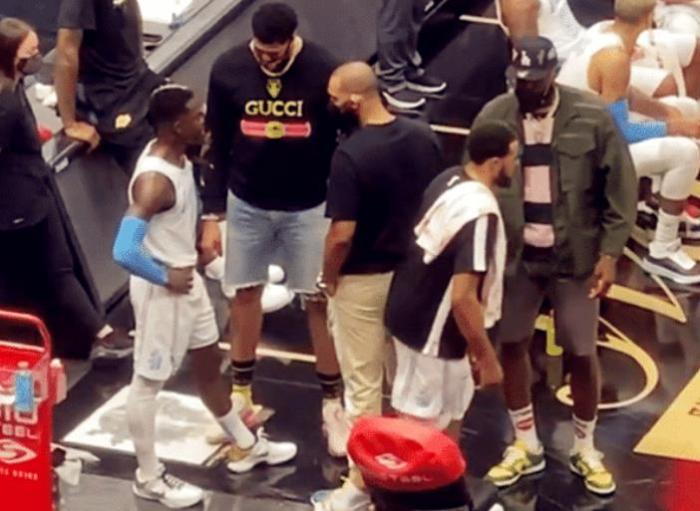 突破太过深入,杀到进去不敢投,又不好传球,小黑的节奏也让湖人队非常的难受,而在这场比赛中,也发生了非常有趣的一幕,在比赛过程中,詹姆斯、浓眉哥、杜德利集体给小黑开会。