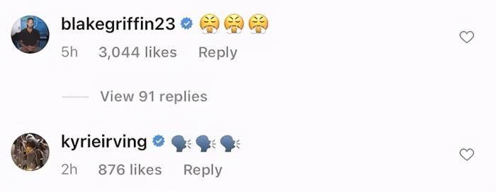 哈登在社交媒体上发布了这条动态不久之后,格里芬和欧文都看到了这条动态,而且纷纷在照片下面留下了自己的评论。虽然格里芬和欧文的评论都是表情,不过从这些评论也可以看出欧文和格里芬的态度,他们显然也是支持自己的队友。这样良好的队内氛围在NBA的球队中其实并不常见,因为虽然很多球员表面上是队友,但是私底下却没什么交流,而篮网的球员居然可以有这么好的友谊。