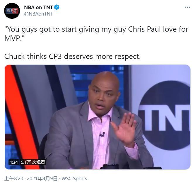 巴克利说,“我觉得大家对于保罗太过苛刻了,联盟对不起这位伟大的球员,你看保罗带领太阳取得了如此优异的战绩,但在MVP的排行榜上,并没有出现他的名字,所以我呼吁大家给我的兄弟保罗一点儿爱。”