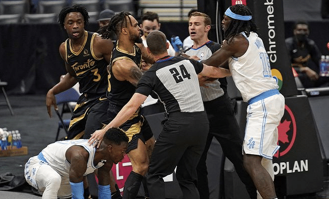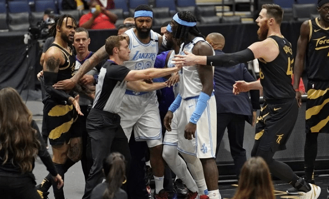 来源:直播车04-09 11:38直播车4月9日讯 前段时间湖人击败猛龙的比赛中,阿奴诺比抱摔施罗德引发了两队的冲突,当时赛场上的判罚是阿奴诺比和推搡的哈雷尔被直接驱逐,而现在联盟的追加处罚来了,Shams报道,阿奴诺比被罚款3万美元,哈雷尔被罚款2万美元,同时双方的球员也因为在冲突期间离开板凳席而被禁赛一场,包括范弗利特、本布里和霍顿-塔克,他们都将无缘球队的下场比赛。