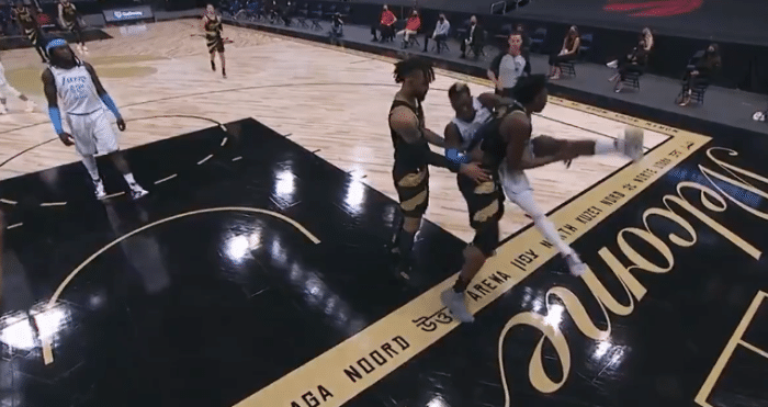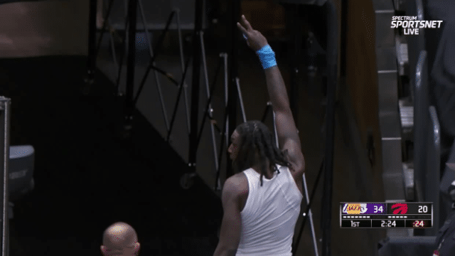 湖人猛龙冲突细节!特伦特未被罚下,哈雷尔送球衣+摆胜利手势