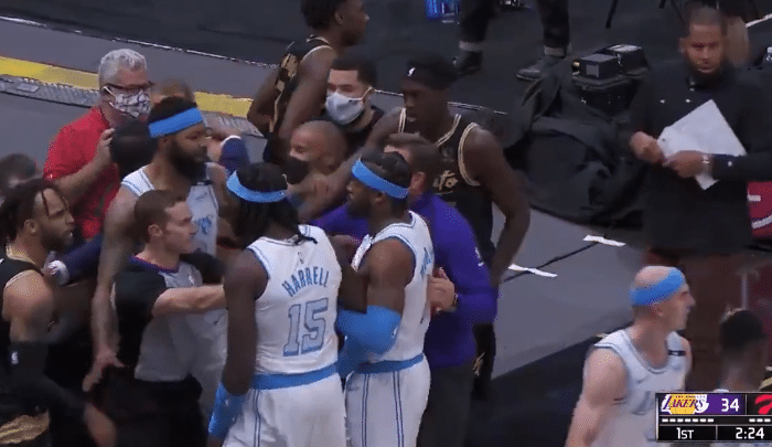 所以可以看出这次的冲突中,猛龙的球员有不对的地方,比如抱摔的阿奴诺比和一上来推搡的特伦特,湖人这边也有不对的,哈雷尔的行为太过激动,他为队友出头但行为不值得提倡。球场上双方的情绪很容易被激化,所以也希望球员们可以控制好动作和情绪,将更多的注意力放在球场上才是最重要的。