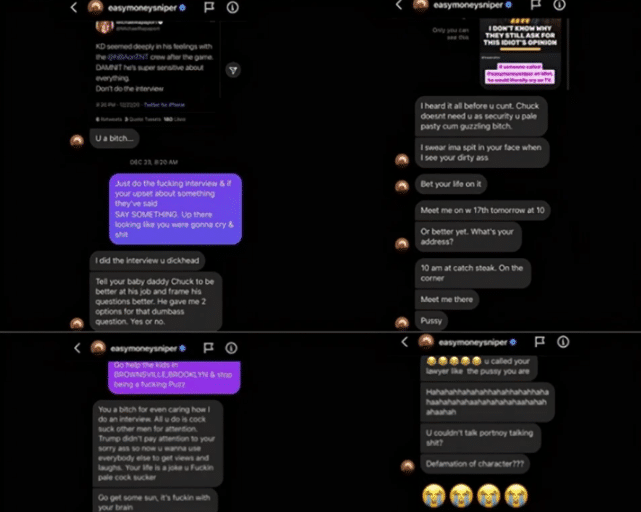 来源:直播车04-06 11:25直播车讯 前段时间杜兰特最大的新闻就是被联盟罚款5万美元,这件事情的起因是演员迈克尔-拉帕波特(Michael Rapoport)在社交媒体上公开了他和杜兰特之间的聊天记录,其中很明显杜兰特有很多不当的言论,使用侮辱性的词语,其中就包括歧视等等。虽然杜兰特很快就进行了道歉,但据悉迈克尔-拉帕波特没有接受杜兰特的歉意,而且还找到了律师,希望进行维权。后期这件事情以NBA联盟罚款杜兰特5万美元而结束,但对于迈克尔-拉帕波特来说,这件事情并没有这么简单。