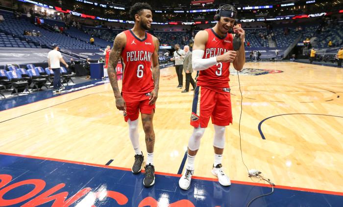 目前鹈鹕21胜26负排名西部第12,距离西部第八相差3.5胜场,还是有希望冲击季后赛的,不过鹈鹕多名核心伤停,锡安(右拇指扭伤)和英格拉姆(指关节酸痛)连续伤停两场,鲍尔(右腿拉伤)已经伤停7场,在这样的关键时刻,鹈鹕太不幸了。