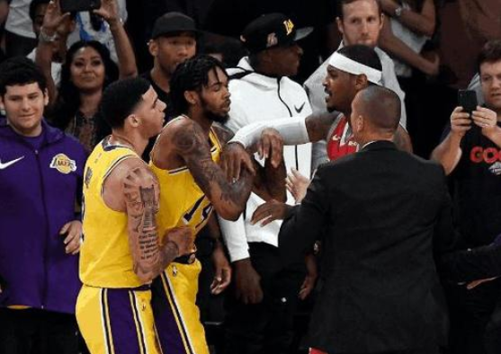 在当场比赛还剩下四分多钟的时候,哈登在进行上篮的过程中面对英格拉姆的防守强行打中,但是裁判没有吹罚,引起了火箭队球员的极度不满,英格拉姆在这个过程中推了一把哈登,火箭队的保罗与隆多也在这个过程对峙了起来,隆多还偷偷向保罗的脸上吐了口水,直接引发了两人的互殴,原本已经退出战场的英格拉姆也迅速赶回战场,并从背后“偷袭”保罗。