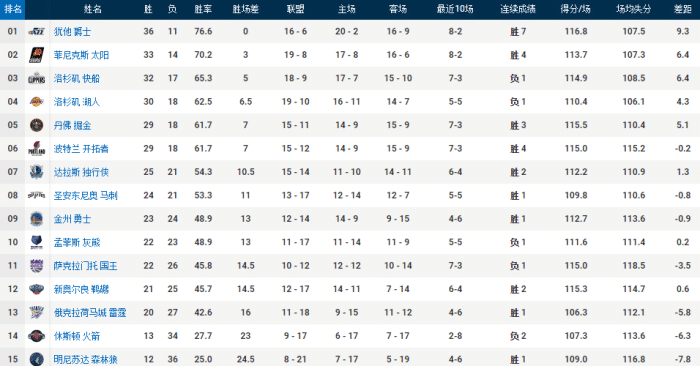 现在的湖人战绩是30胜18负,位居西部第四,不过他们领先身后球队的优势已经很小了,掘金和开拓者距离湖人之间只有0.5个胜差,第七名的独行侠距离湖人4个胜差,第八的马刺距离湖人之间有4.5个胜差。