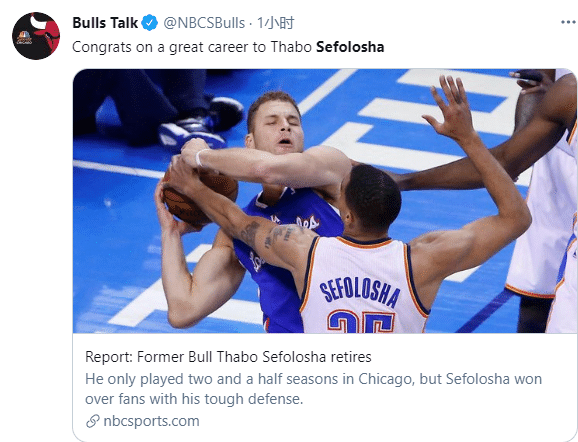 塞弗罗萨是06年首轮第13号秀,在公牛开启自己的NBA生涯,随后为雷霆、老鹰、爵士和火箭效力过;当年杜兰特、韦少和哈登三少带领雷霆杀进总决赛,联盟顶级3D塞弗罗萨为他们贡献一份力量,靠防守占据一席之地,绰号“瑞士军刀”——09年为雷霆打满82场比赛。