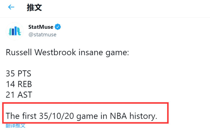 据statmuse统计,韦少还成为NBA历史第一位打出至少35分10板20助攻的球员!