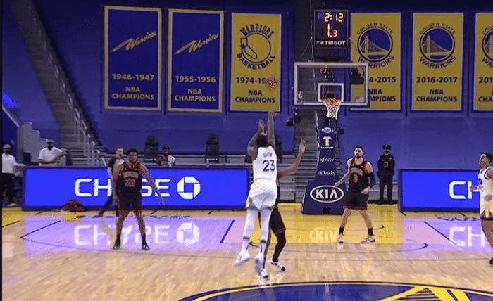 不过这次追梦格林的Logo shot终于投进了,一扫此前投丢绝平球的尴尬,而且最重要的是追梦格林平时很少投三分球,今天三分球5中3,表现很抢眼,当然这记Logo shot是其中的亮点。
