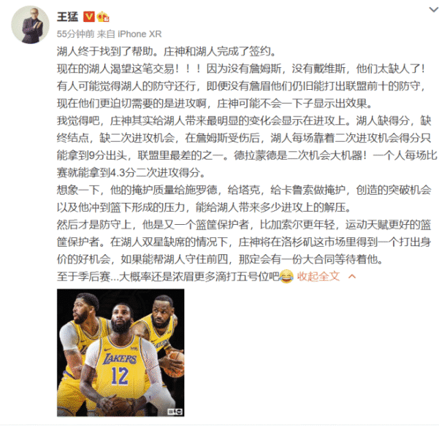 来源:直播车03-29 16:28直播车讯 庄神官宣加盟湖人,一时之间这支卫冕球队又重新成为了人们热议的焦点,纷纷期待着詹眉回归后他们一起对抗篮网的豪华阵容。
