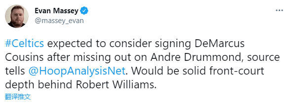 来源:直播车03-29 15:15直播车2月29日讯庄神正式宣布加盟洛杉矶湖人,这意味着凯尔特人抢人失败了,因此凯尔特人把目标瞄准考辛斯,据美记者Evan Massey报道,在德拉蒙德争夺战(加盟湖人)出局后,凯尔特人将考虑签下考辛斯。
