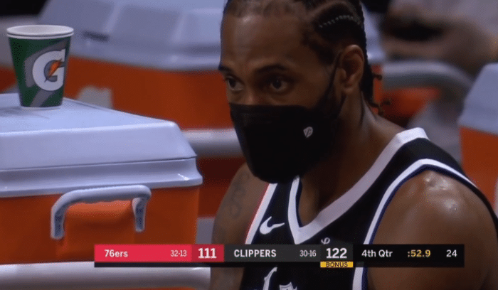 比赛一开始,小卡内线抢断铁林,轻松抛投得分,随后小卡一段时间不出手,快船落后陷入被动,见状小卡再次进攻,持球杀到禁区暴扣得分,然后抢断反击一条龙再次扣篮得分;到了第二节,快船和东部第一展开拉锯战,此节5分多钟,小卡重新回来。