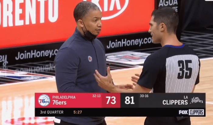 第三节,小卡三投全部打铁不中,仅靠罚球拿到5分,不过快船进攻火力十足,单节32-24继续扩大分差;期间多次出现争议判罚,小莫里斯抱摔霍华德吃到恶意犯规,裁判莫名吹罚小莫犯规后泰伦卢挑战成功,改成西蒙斯对小卡犯规。
